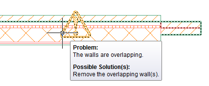 The intended interaction among objects in an AutoCAD Architecture 2027 toolset drawing depends on various rules about how objects are placed in relation to one another. Whenever the software identifies a problem with the placement of objects or their components, a solution tip icon is displayed to identify the location of the problem, as shown.
