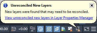 When you click the link, the Layer Properties Manager opens, and the Unreconciled New Layers filter is automatically selected. All new layers that have been added to the drawing or attached xrefs are displayed in the list view.