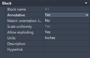 - On the Properties Palette, under Block, select Yes for Annotative.