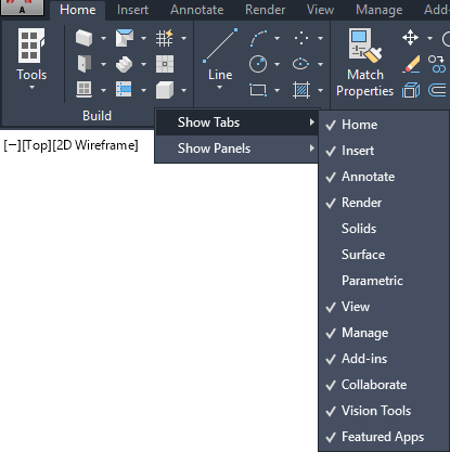 to indicate that the panel can be expanded. The expanded part typically contains commands that are less frequently used.