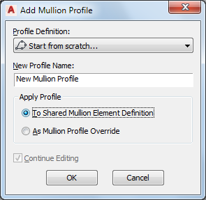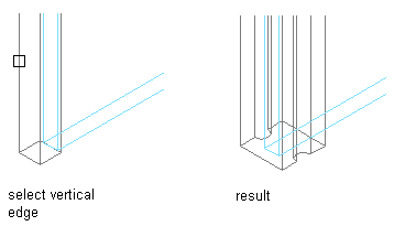 Use this procedure to assign a profile to a vertical edge of a frame or mullion. The curtain wall edge profile can be any profile or any closed polyline that you specify. You can use a profile edge to create a unique corner in situations where a simple miter is not sufficient.