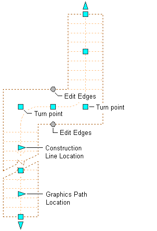 Multi-landing stair landing Turn Point, Construction Line Location, Graphics Path Location, and Edit Edges grips