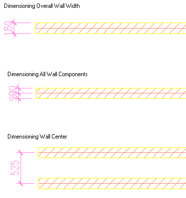 Alternatively, you can select to dimension a multi-component wall not to each individual component, but to the overall wall width or the overall wall center. You set these points in the AEC dimension style.