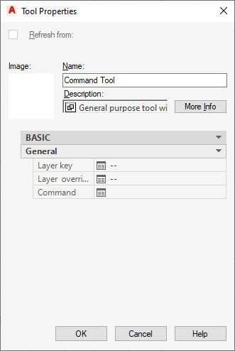 - Command Tool: A simple blank command tool that lets you execute a number of command sequences. Allowed commands include AutoCAD and AutoCAD Architecture 2027 toolset commands, VBA macros and applications, AutoLISP routines, and scripts.