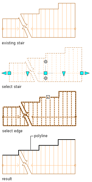 Use this procedure to generate a polyline from the edge of a stair. The polyline is generated at the stair bottom elevation.
