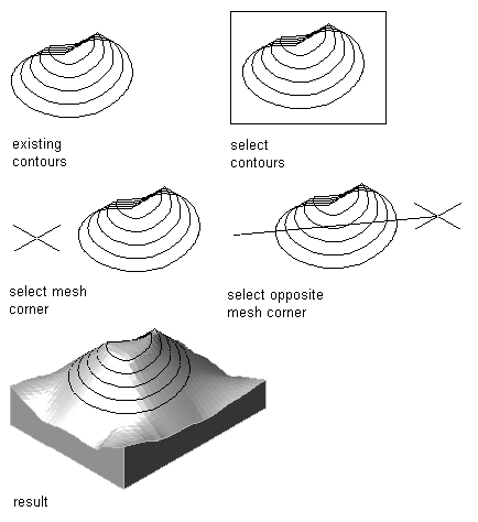 Note: If the selected mesh area extends beyond the selected contours, the topography of the resulting mass element is extrapolated from the input values.