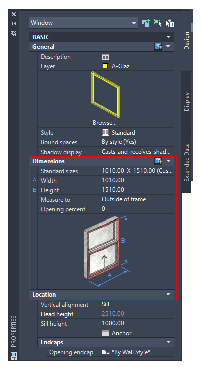 2. On the Properties palette, expand Basic, and expand Dimensions.