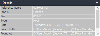 - Status displays whether the xref is loaded or unloaded in the host drawing, and it displays the host drawing as Open if it is open in the drawing window. If the host drawing is not open in the drawing window, status is left blank.