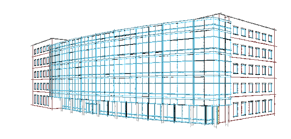 After the structure of the building project is defined, and constructs are assigned to levels and divisions, you can start to create view drawings. A view drawing references a number of constructs to present a specific view of the building project. To create a view drawing, you first decide which portion of the building you wish to look at and which type of view to generate. You could, for example, create a first-floor reflected ceiling plan or a second-floor framing plan, or create a composite view of all floors in the building. View drawings automatically reference the appropriate constructs according to their level/division assignments within the building. For example, to create a floor plan of the west wing of the second floor, you would create a view that references all constructs assigned to the second floor and the west wing. This would also include a curtain wall spanning the first through fifth floors.