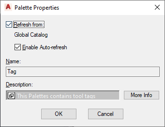 | automatically update the linked tool palette from the Content Browser when starting AutoCAD Architecture 2027 toolset | select Enable Auto-refresh. |
