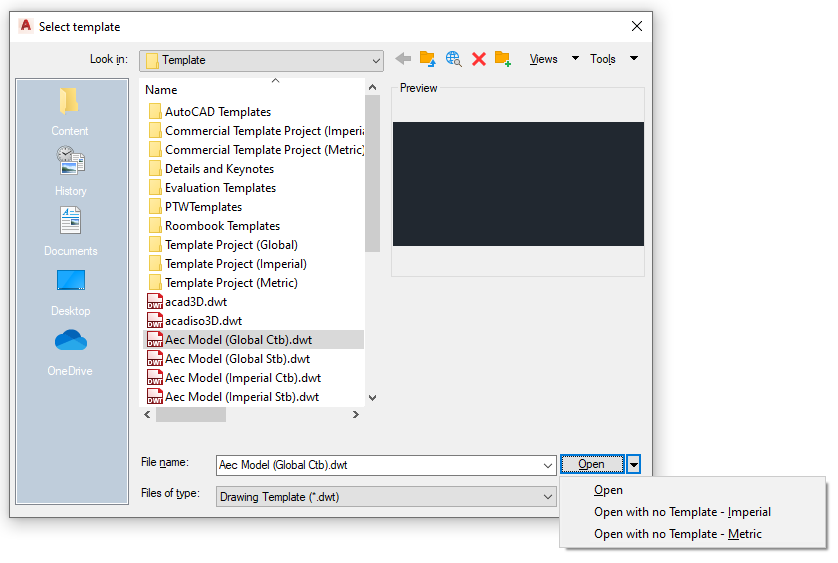 Drawings that are not based on templates contain no customized or predefined settings, such as display configurations or architectural units. Drawings without a template use the settings specified in the Drawing Setup dialog box.