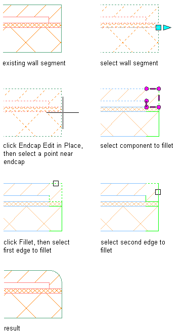 Use this procedure to modify a wall endcap by filleting a wall component.