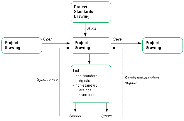 If the synchronization process finds a style or display setting in a project drawing that has the same type, name, and version GUID as the corresponding style or display setting in the project standards, it concludes that the style or display setting is up-to-date with the project standards. In that case, no change is necessary.