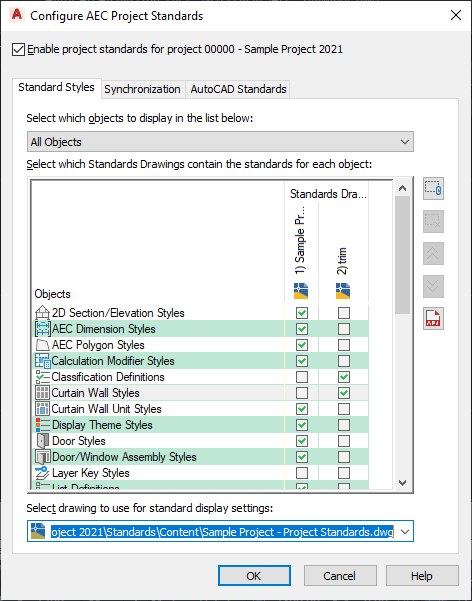 You can synchronize different parts of a project. You can synchronize a complete project, an individual project drawing, or an individual style or display setting.