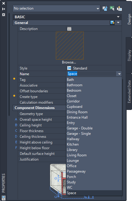 A list definition is a list of names that may be used as allowed names for spaces or zones. List definitions can be attached to a space style or a zone style, so that the list of names is available on the Properties palette when you create or edit a space or zone with that style.