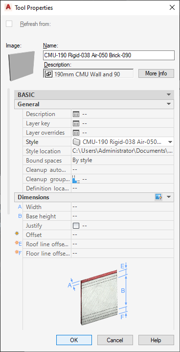 - Cleanup Group Definition: If you have defined a wall that should not clean up with other walls that are not of the same type, you can pre-set the cleanup group definition that it is inserted with.
