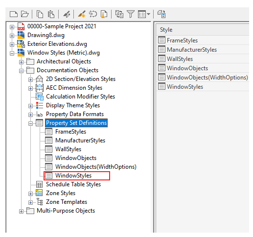 Expand Property Set definition and select Window Styles.