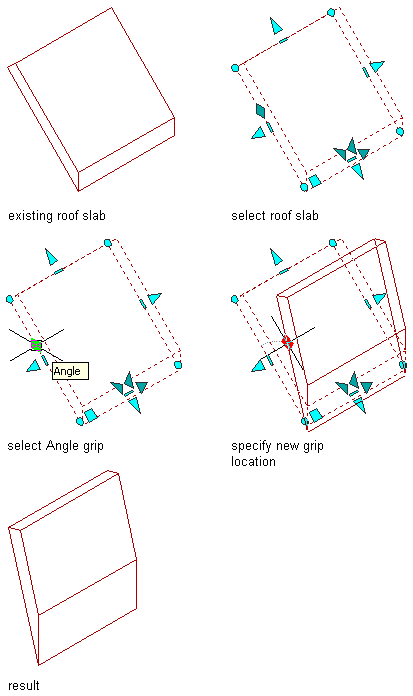 Use this procedure to change the slope of a slab or roof slab in a 3D isometric view. (You can also use the Properties palette to adjust the slope and control the automatic alignment of the fascia).