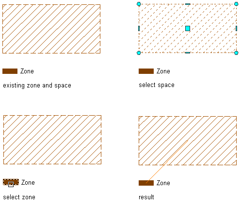 Note: You can attach spaces and zones to zones inside blocks, or attach spaces or zones inside a block to a zone outside the block, but if the blocks are exploded the attachments will be removed.