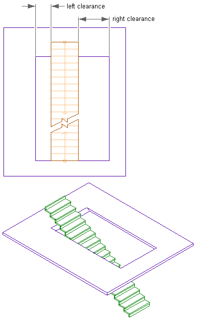 | specify the left and right side clearances for the interference condition for straight and multi-landing stairs | enter values for Left and Right Clearance. |