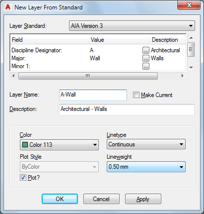 Layer standards can be based on architectural standards like AIA or BS1192, or they can be user-defined and represent a company or other standard. AutoCAD Architecture 2027 toolset ships with a number of predefined layer standards and matching layer key styles.