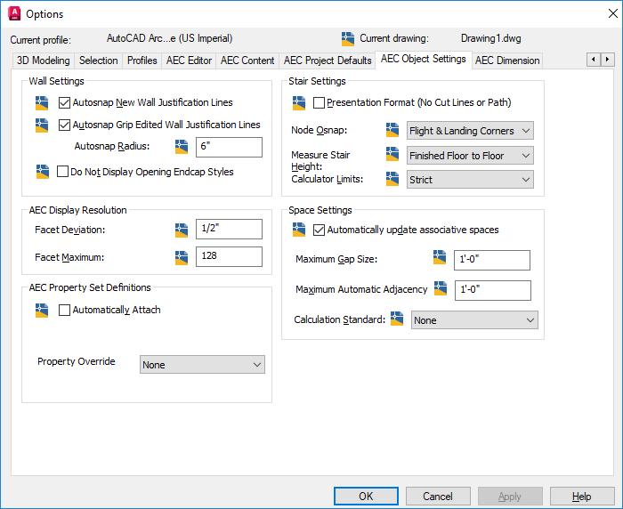 - Select the AEC Object Settings tab.