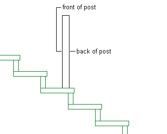 Specify the post orientation relative to the up and down directions on a stair run in elevation view as shown in the following illustration: