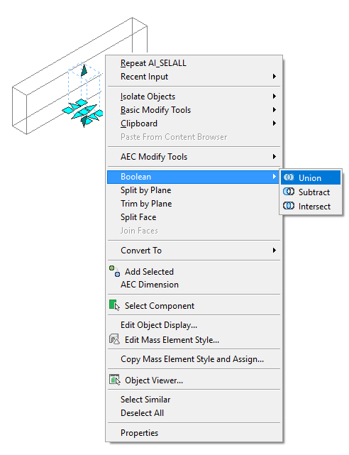 You can add a 3D modifier to a wall body, and then edit it in place. Body modifiers use the 3-dimensional (3D) geometry of an object, such as a mass element or a mass group, to add to, subtract from, or completely replace one component in a wall.