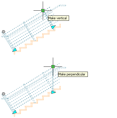 Use this procedure to specify perpendicular or vertical railing orientation relative to a stair flight. By default, railing have a vertical orientation when you create them.