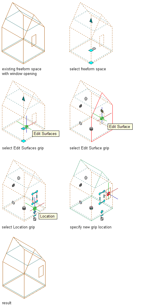 - Select the space on which you want to move a surface opening, and click the Edit Surfaces grip.
