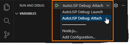 - AutoLISP Debug: Attach – Allows you to attach VS Code to an instance of AutoCAD that is already running