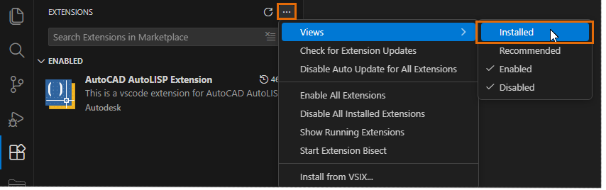 - In the Extensions view, click More Actions… > Show Installed Extensions.