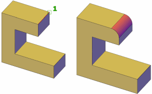 Specifies one or more edges on the same solid body to fillet. After pressing Enter, you can drag the fillet grip to specify a radius, or use the Radius option.