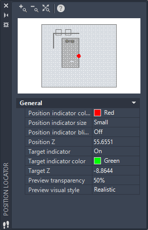 Displays your current location in the model. You can drag the position indicator to change your position. You can also drag the target indicator to change the direction of the view.