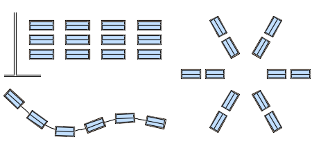 After you select the objects that you want to duplicate, which are called the source objects, you choose the arrangement pattern. There are three types of arrays: