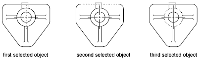 It is difficult to select objects that are close together or lie directly on top of one another. The example shows two lines and a circle that lie within the pickbox.