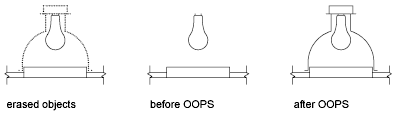 OOPS restores objects erased by the last ERASE command.