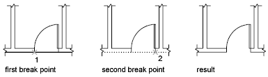Use BREAK to create a gap in an object, resulting in two objects with a gap between them. BREAK is often used to create space for block or text.