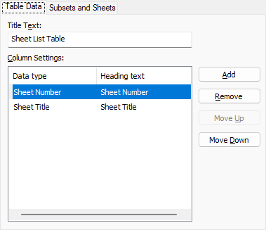 Allows you to change the title text for each column in the sheet list table.