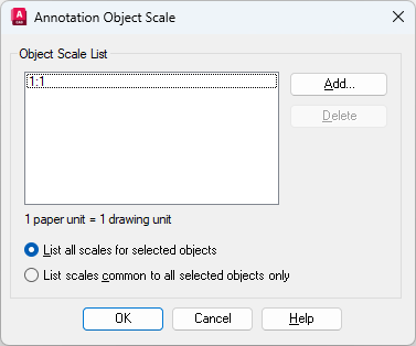 Specifies that all scales supported by the selected objects are displayed in the Object Scale List.