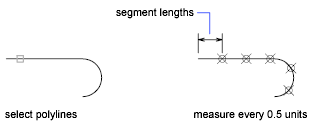 Creates point objects or blocks at measured intervals along the length or perimeter of an object.