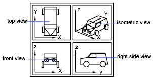 The view orientation of the specified orthographic view is based on the UCSBASE system variable, which is set to the world coordinate system by default. When one of the orthographic views is restored, the program zooms to the extents in the current viewport.