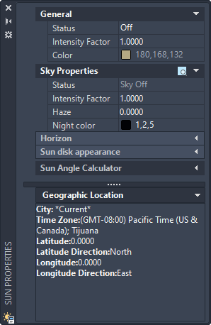Turns the sun on and off. If lighting is not enabled in the drawing, this setting has no effect.