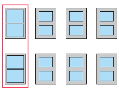 In this example, two of the items in the array are replaced by items with larger panes.