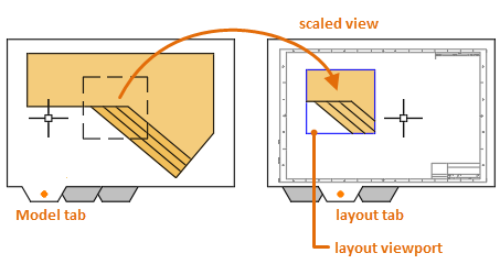 On each layout, you can create one or more layout viewports. Each layout viewport is like a closed circuit TV monitor of a view of the model at a scale and orientation that you specify.