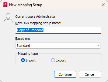 Sets up mapping for the import or export of DGN files.