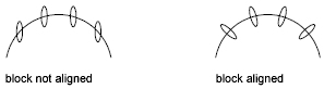 Aligns the blocks according to the curvature of the selected object. The X axes of the inserted blocks will be tangent to, or collinear with, the selected object at the dividing locations