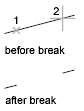 The prompts that are displayed depend on how you select the object. If you select the object by using your pointing device, the program both selects the object and treats the selection point as the first break point. At the next prompt, you can continue by specifying the second point or by overriding the first point.