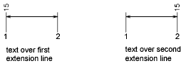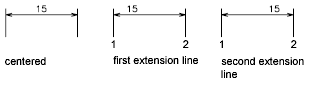 Text is positioned inside the extension lines only if the resulting segments are at least as long as the text gap. Text above or below the dimension line is placed inside only if the arrowheads, dimension text, and a margin leave enough room for the text gap. (DIMGAP system variable)