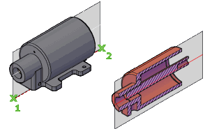 Section plane objects create sections of 3D solids, surfaces, meshes, and point clouds. Use live sectioning with section plane objects to analyze a model, save sections as blocks for use in layouts, and extract 2D geometry from point clouds.